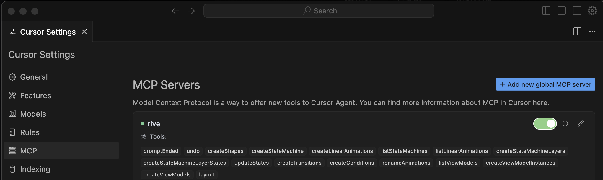 If everything was installed correctly, you should see Rive as an available MCP server